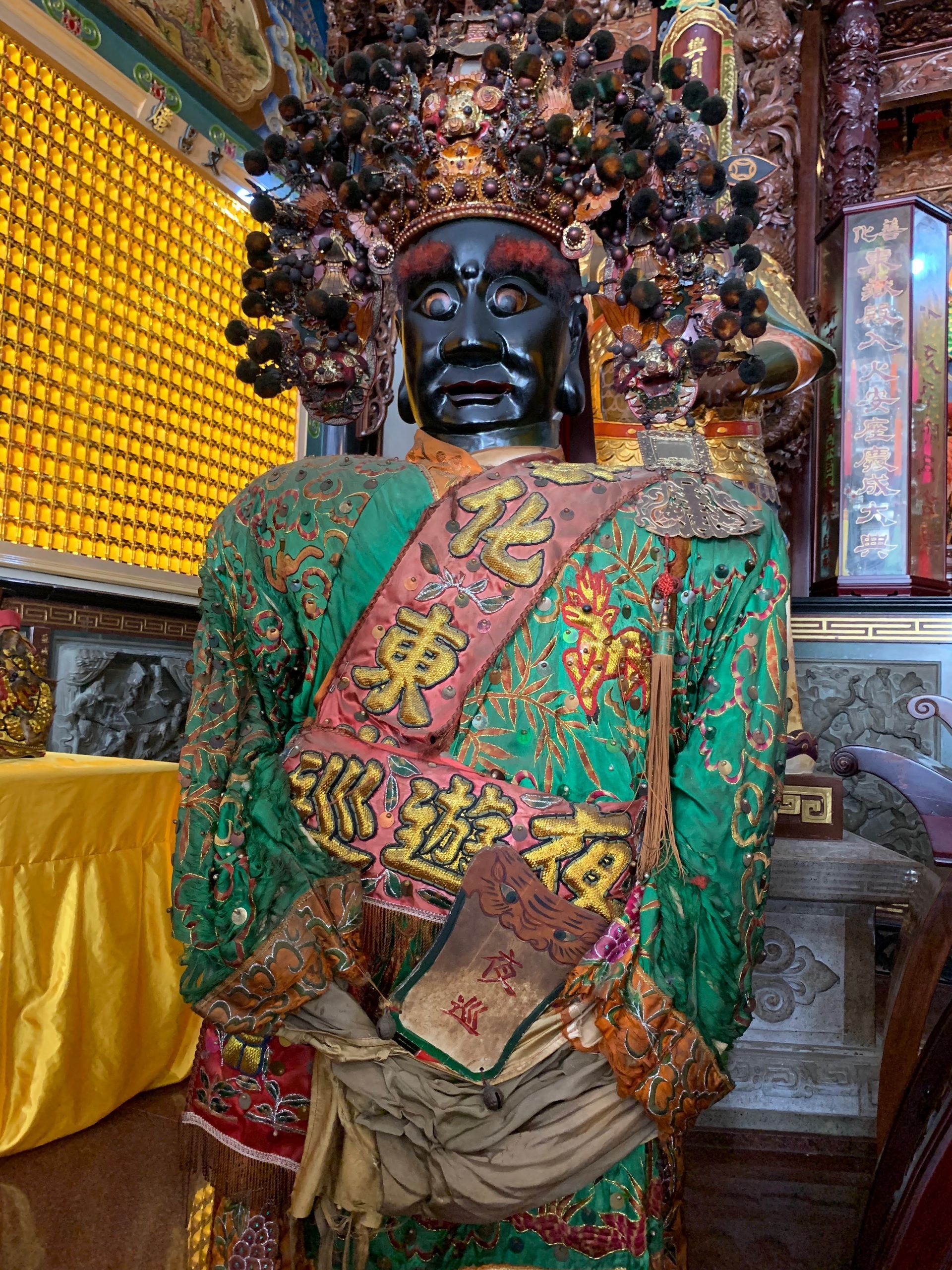 【田都元帥】,為台灣音樂與戲劇界的守護神,也是正義凜然的護法將軍。相傳祂本名雷海青,唐朝人,為宮廷樂官,音樂天賦極高。安祿山叛亂時,仍忠於唐皇,終為義而殉,後由朝廷封為「天下梨園大總管」。