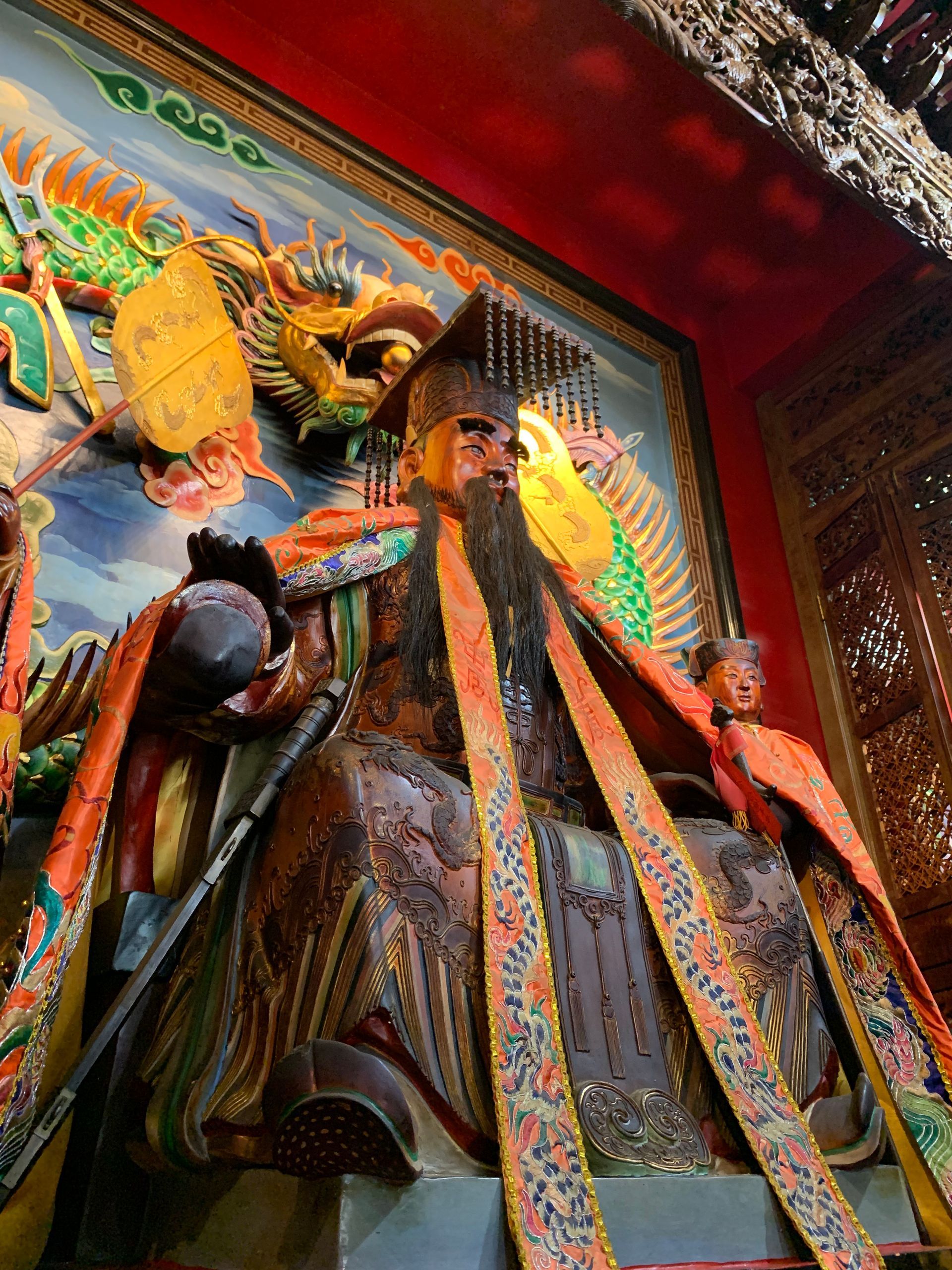 In the Dongyue Temple in Shanhua, General Tiger is enshrined in front of the main deity's throne. He is the guardian of all gods, powerful in all directions, and protects local peace.