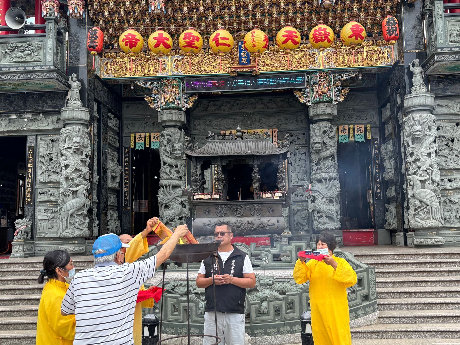 On the first and fifteenth day of each lunar month, the Shanhua Dongyue Temple Rituals and Chanting Group holds a regular prayer ceremony. On these days, members gather in front of the temple and devoutly recite scriptures, praying for peace, the elimination of disasters, and the growth of blessings and wisdom for the faithful.