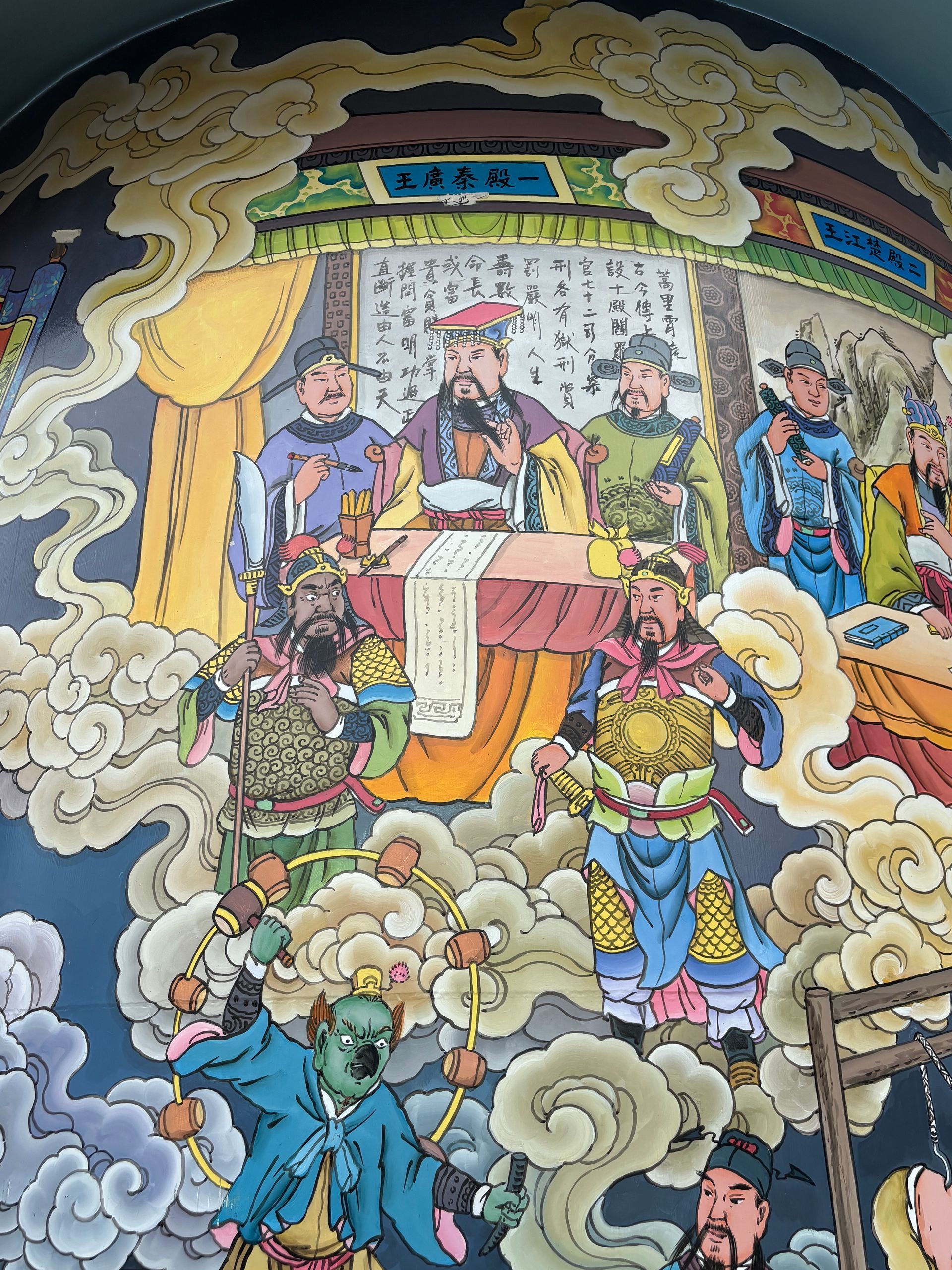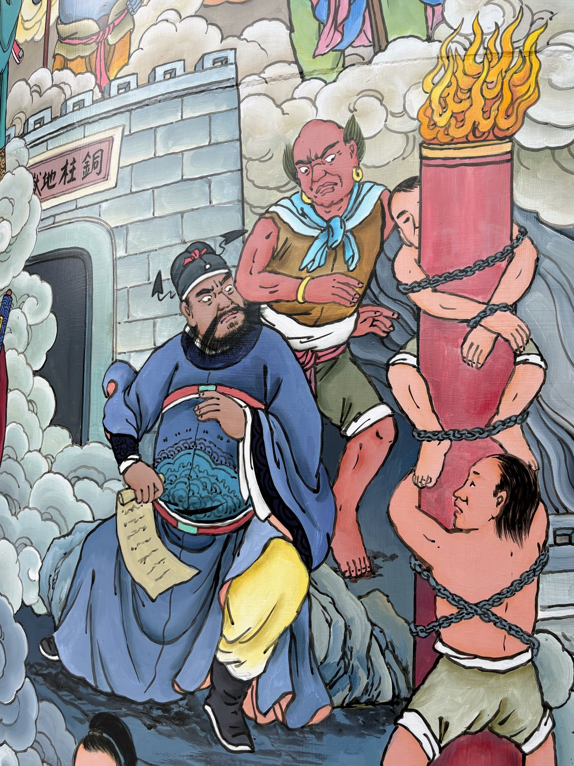 地藏庵之地鼎,以白鐵為基底材訂製,並提供與十殿閻羅相關之圖稿,由畫師<劉武吉>編排佈局,將圖稿繪製於白鐵地鼎上;為使彩繪圖層能耐焚燒紙錢之高溫及戶外日曬雨淋,由彩繪匠師<許各億>及其公司,以專業耐高溫之底漆打底後,再交由畫師<劉武吉>繪製十殿閻羅圖。