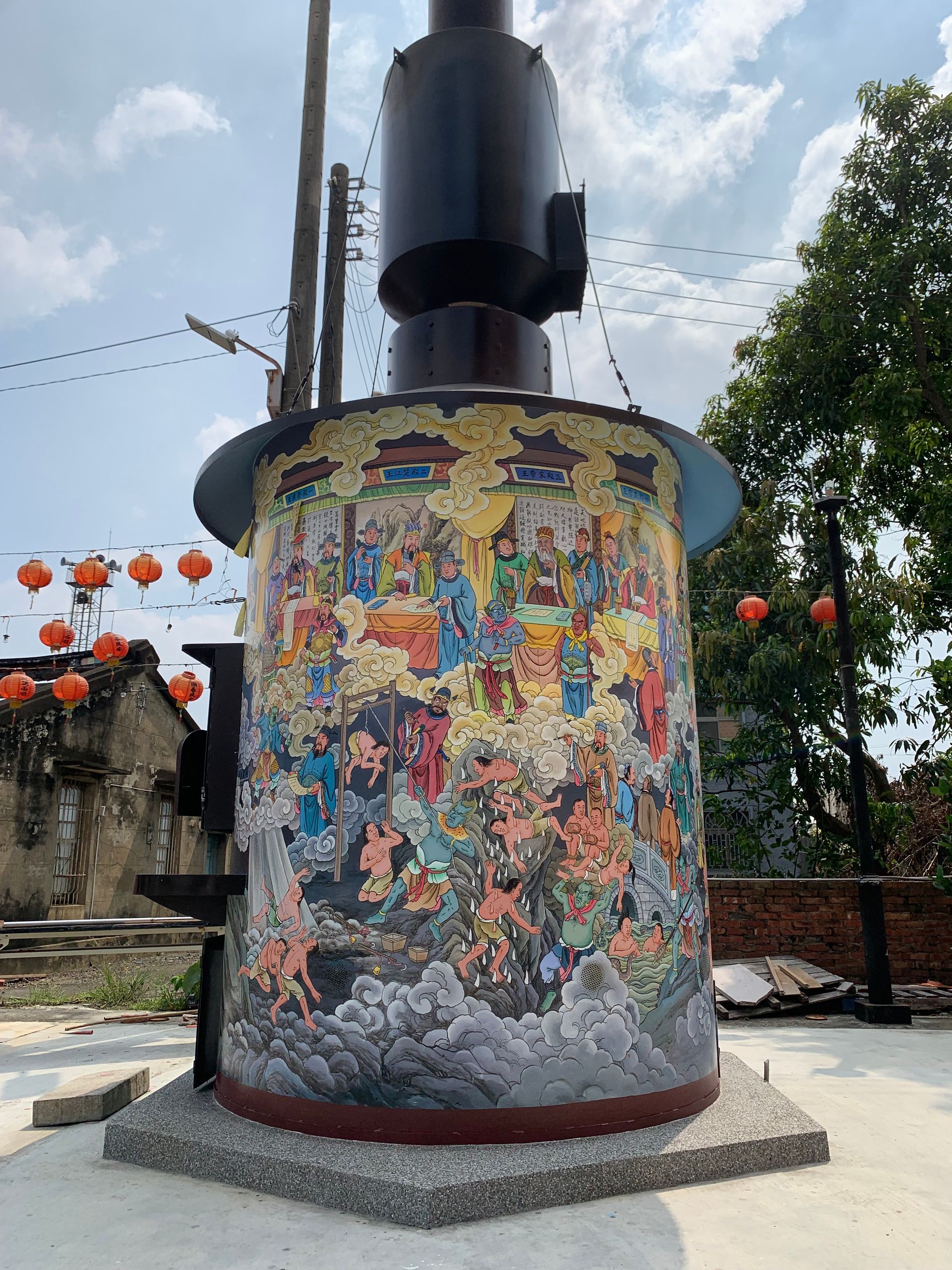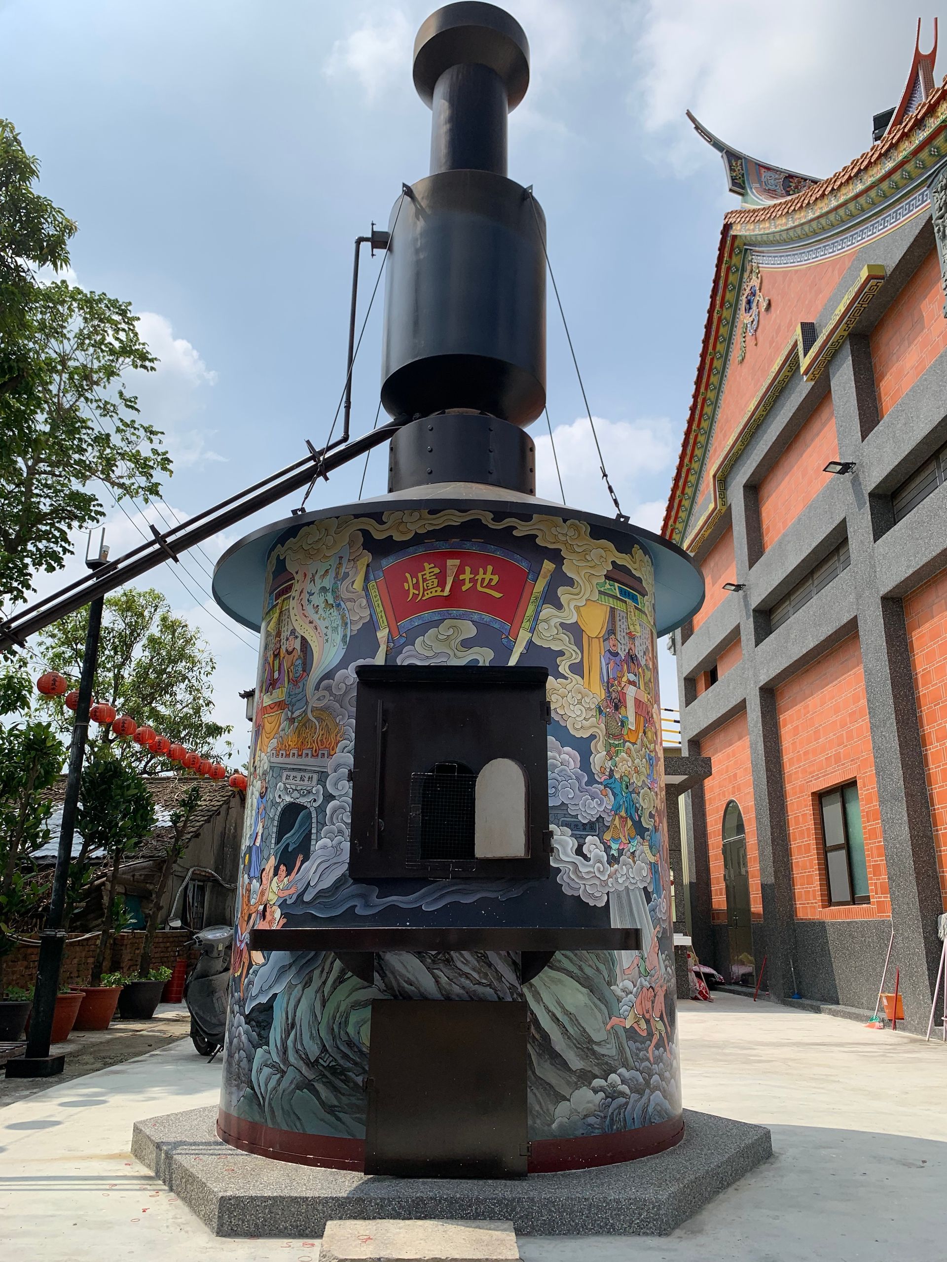 一般白鐵訂製之地鼎並非罕見,但少有在白鐵地鼎之上,大膽嘗試以漆料彩繪美化的案例;且此地鼎已使用多年,彩繪圖層及上蓋底漆仍完好如初,如同本廟其他彩繪相關之作品,皆由<許各億>匠師團隊,進行現況維護,定期若有損壞需維修、清潔、保養等保存維護相關問題,皆由專業彩繪團隊處理。